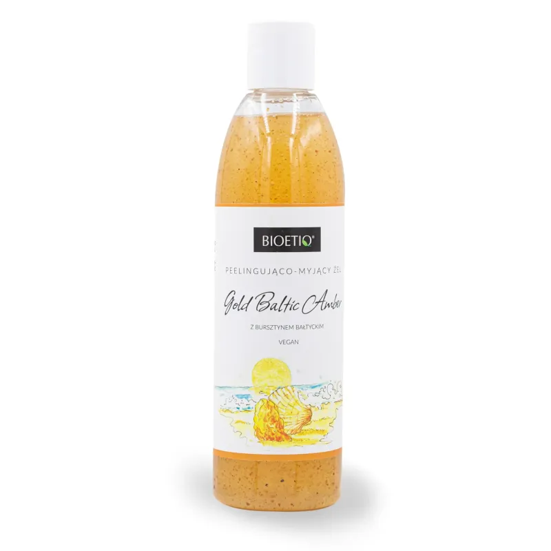 Naturalny, hipoalergiczny peelingujący żel do mycia ciała zawiera drobinki naturalnego bursztynu bałtyckiego, które usuwają martwy naskórek i poprawiają krążenie.